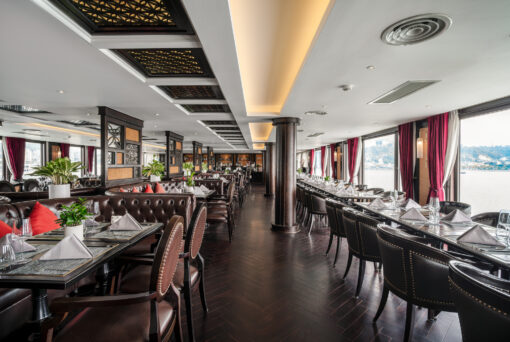 Tùy thuộc vào điều kiện du ngoạn, hành trình có thể thay đổi mà không cần thông báo trước. Wi-Fi có sẵn tại nhà hàng/khu vực Piano Lounge, tuy nhiên, kết nối Internet có thể bị gián đoạn do điều kiện địa lý của vịnh. Cảm ơn sự thông cảm của bạn