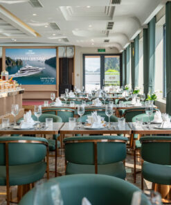 Nhà hàng trên du thuyền Leona Cruise được thiết kế 2 tầng hiện đại, với sức chứa lên đến 240 khách (tầng 1 tối đa 140 khách, tầng 2 tối đa 100 khách).